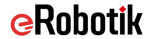 Una flota de Robots Móviles Autónomos (AMR) de tipo carretilla elevadora de eRobotik.com, diseñados en blanco y azul con el...